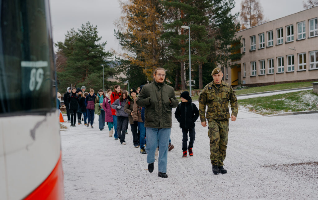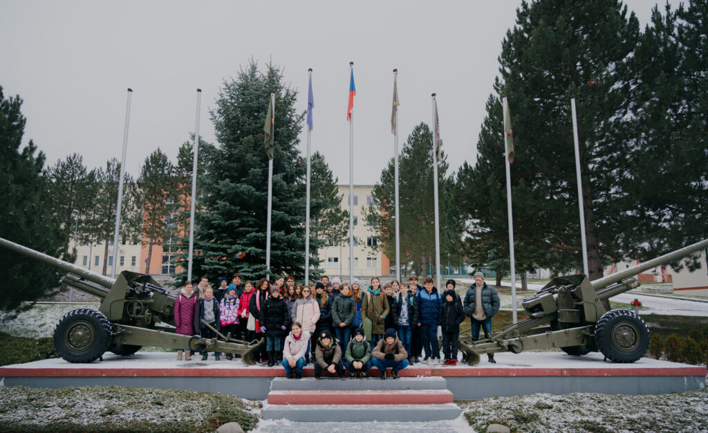 Students from Karel Čapek Grammar School in Dobříš had the opportunity to visit the 13th Artillery Battalion and learn about its structure, past missions, current operations, and training. The visit included a demonstration of the battalion’s preparations, a discussion about the equipment, and a close‑up look at vehicles such as the TITUS, Dana, Hilux, and Tatra, as well as infantry weapons and soldiers’ gear.