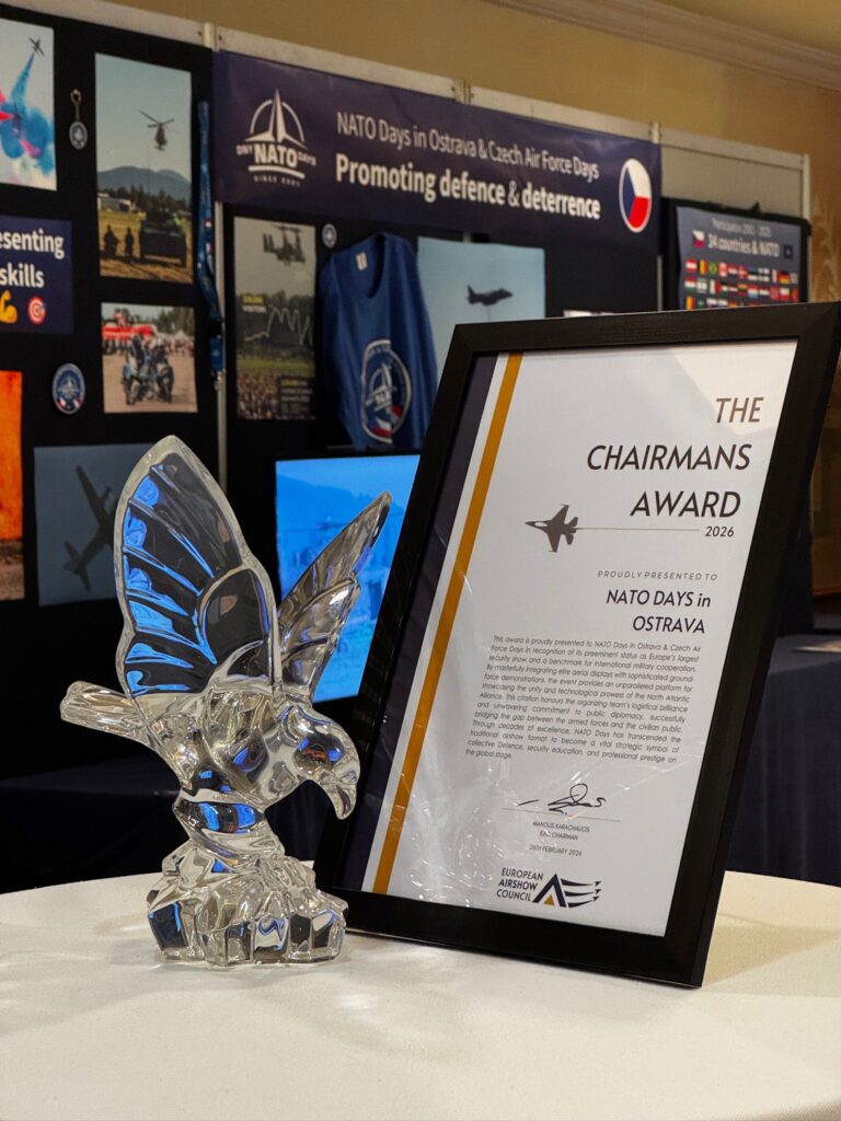 EAC Chairman’s Award uděluje předseda European Airshow Council Manolis Karachalios, zkušený display pilot a spoluzakladatel F-16 Zeus Demo Team. Velmi si vážíme toho, že byly Dny NATO v Ostravě & Dny Vzdušných sil AČR oceněny právě tímto způsobem a že se během více než čtvrtstoletí existence podařilo tuto akci zařadit mezi nejprestižnějších akcí v celé Evropě.